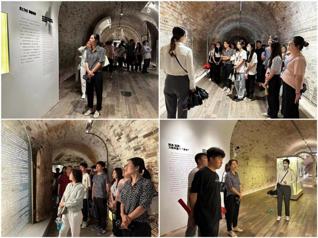 在讲解员的带领下,师生党员依次参观了抗战时期全国最大的“窑洞工厂”、罕见的双曲拱结构“薄壳车间”、中西合璧式砖木结构的“申新纱厂办公楼”等历史遗址,听取荣氏申新纱厂内迁宝鸡、实业救国的珍贵历史事迹,见证民族企业家实业救国的历史过程,重温抗战历史,感悟伟大抗战精神。大家认真听取讲解、驻足观看展品、不时交流感悟,汲取这些壮烈的革命故事在百年风雨后沉淀下来的激励人心的力量。