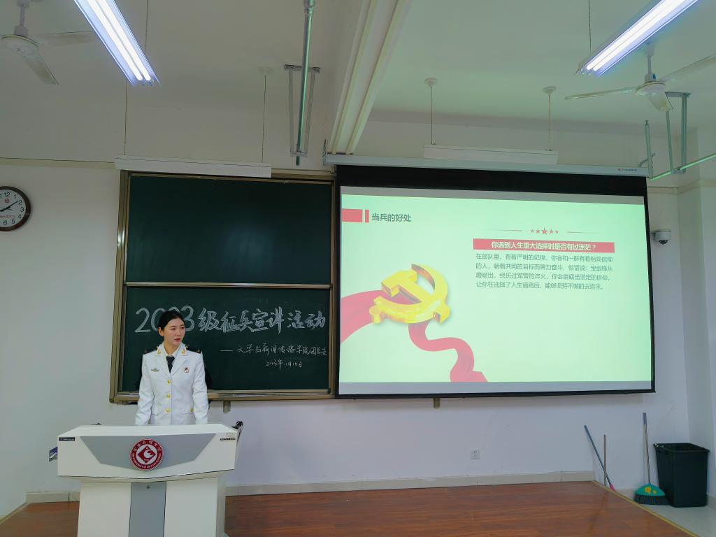 11月15日晚,9428cn太阳集团在高新校区博文楼508教室举办了2023年征兵宣讲活动。