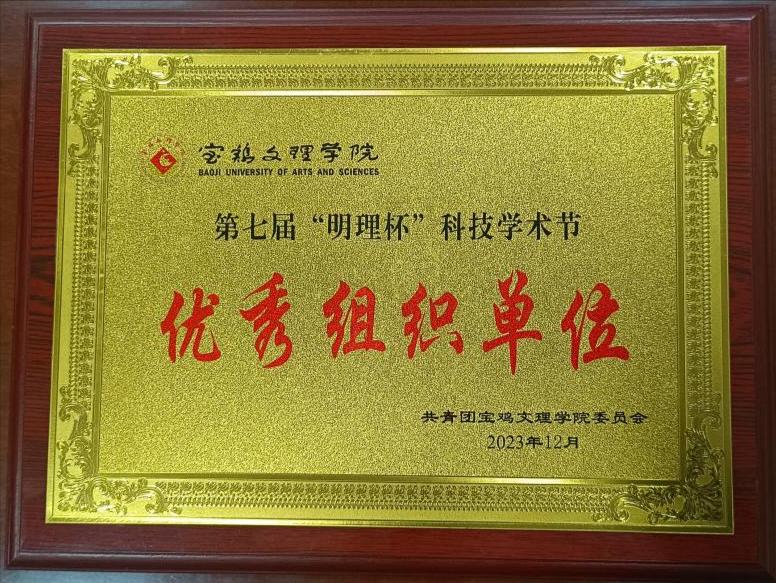 12月14日下午,由校团委主办的太阳集团第七届“明理杯”科技学术节闭幕式在高新校区博文楼报告厅举行。我院团总支获评本届科技学术节优秀组织单位荣誉称号并接受表彰。