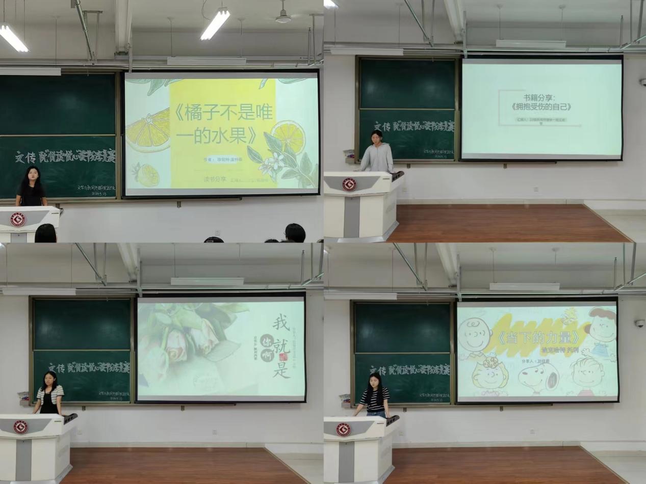 随后,获得一等奖的8名同学从书籍简介、作者介绍、经典分享和阅读体会等多个角度分享了自己喜欢的心理学书籍或文章,现场活动氛围热烈,同学们互动频繁,纷纷表示受益匪浅。
