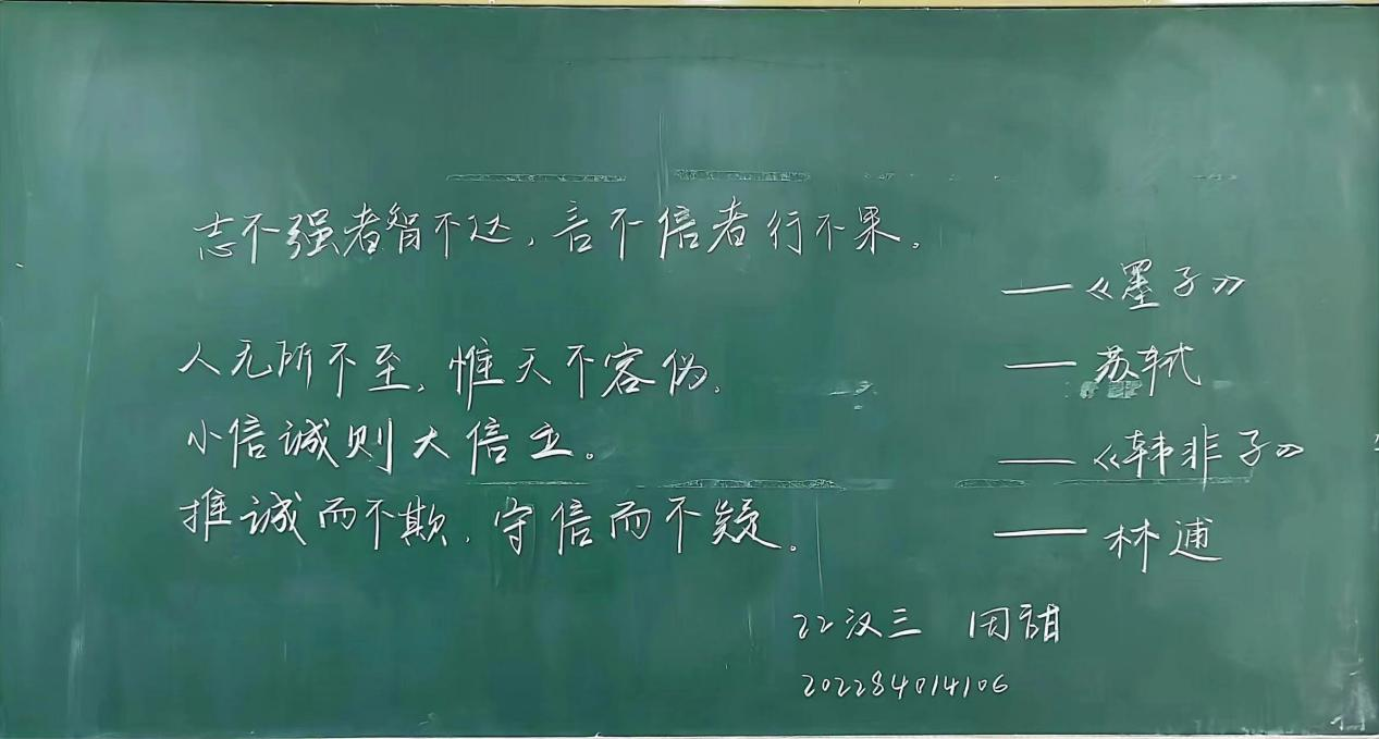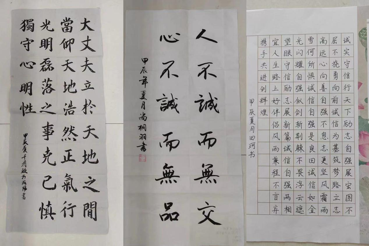 为深入推进资助育人工作,增强当代大学生的诚信意识和责任担当,6月4日至11日,我院开展了2024年“以诚待人,以信立身”诚信教育三笔字书法作品竞赛。同学们积极创作,作品类别涵盖硬笔书法、软笔书法和粉笔板书。