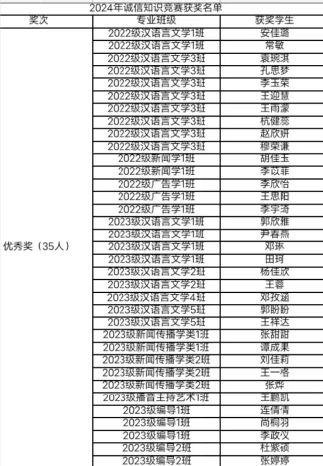 经评选,我院2022级汉语言1班安佳璐等35名同学荣获优秀奖。