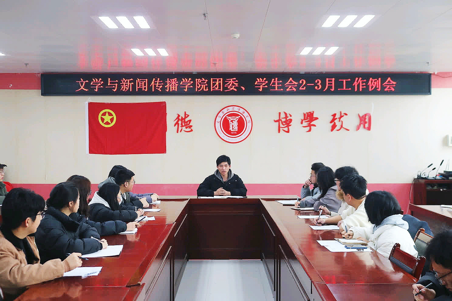 会上,苟宇轩领学了《团中央举办2025年“共青团与人大代表、政协委员面对面”暨“青联思享汇”活动》。学院团委、学生会各部门负责人汇报了寒假工作总结及三月份工作计划。学院团委副书记、学生会主席团安排了寒假社会实践总结、学雷锋志愿服务活动、“两早两晚”点名等工作。