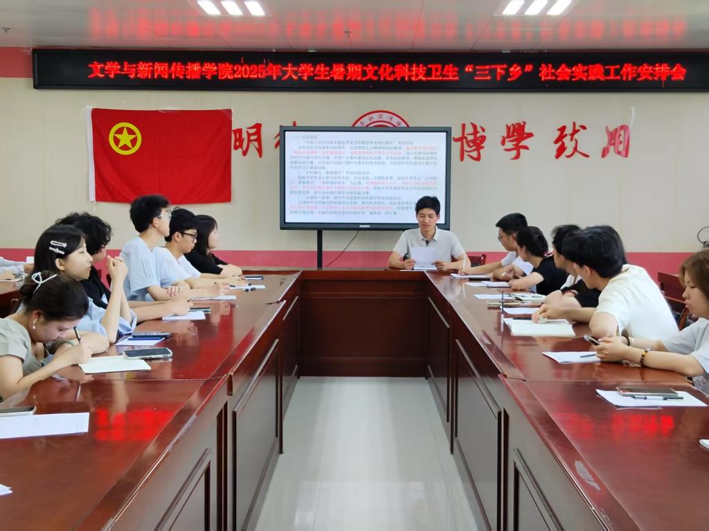 会上,学生干部杨沅莎领学了《关于开展太阳集团2025年大学生暑期文化科技卫生“三下乡”社会实践活动的通知》,对社会实践的项目类别、过程要求和实践成果上交方式等问题进行了详细说明。
