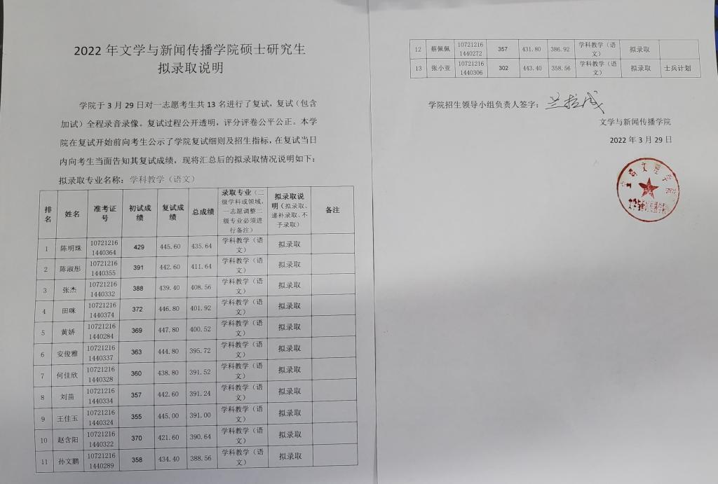 9428cn太阳集团学科教学(语文)一志愿拟录取名单公示