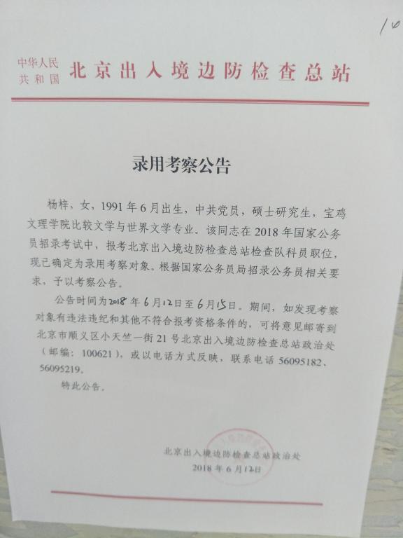 我院2015级学术硕士杨梓考取国家公务员!祝贺杨梓!感谢导师王永奇老师!
