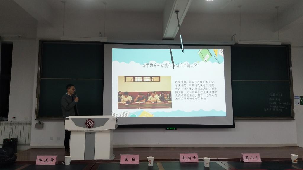 周小东同学是我院2018级现当代学术硕士,现为陕西省公务员。周小东同学讲述了《2018级学硕“‘兰州-敦煌’丝路游学之旅”》,分享了他在参加我院2019年7月学术硕士研究生集体奔赴“兰州——敦煌丝路之行”的点点滴滴。通过他的分享,同学们拓宽了眼界,激发了家国情怀,了解了祖国的发展变化,也感受到学院在研究生培养方面做出的努力。