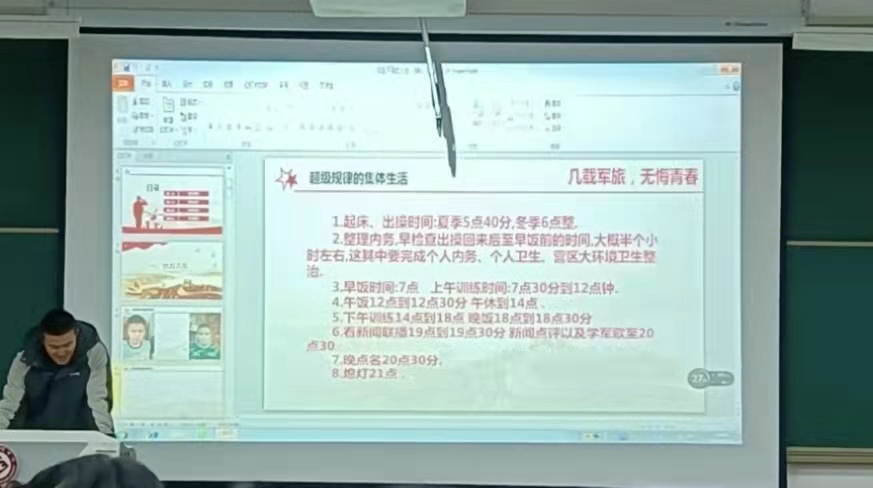 冯科同学是我院2020级现当代学术硕士。他讲授的是《我的军旅人生》,回忆了难忘的军旅生活。从新兵蛋子到一名成熟的老兵的成长过程。他用自己的亲身经历告诉同学们,不管人生面临多少困难和挫折,都要学会坚韧面对,顽强长大。不抛弃自己,热爱每时每刻。只要活着,一切皆有可能。