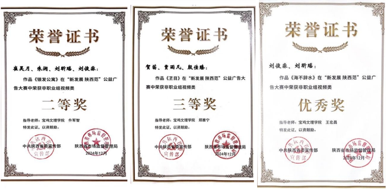 近期,由中共陕西省委宣传部、陕西省市场监督管理局联合主办陕西省“新发展 陕西范”公益广告大赛落幕。我院2023级广播电视艺术硕士在比赛中荣获非职业组视频类多项奖项。