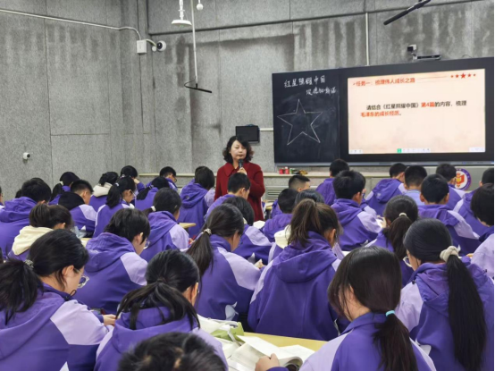 高新一中语文教研组组长杜娟梅老师以“高山安可仰 徒此挹清芬”为主题,向大家呈现了一堂《红星照耀中国》整本书阅读的公开课。整堂课围绕“梳理伟人成长之路”“探究伟人崇敬之行”“深思伟人崇敬之变”三个任务展开,引导学生在文本中把握关键事件,在小组讨论与事例分析中,感受伟人的高尚品德,在知人论世中思考崇敬之情的时代演变。