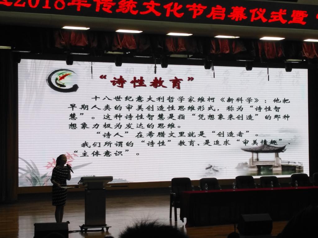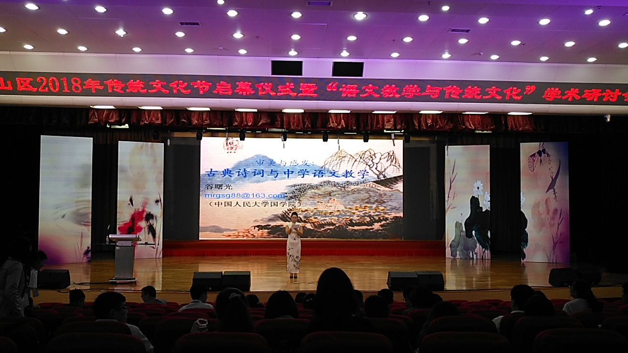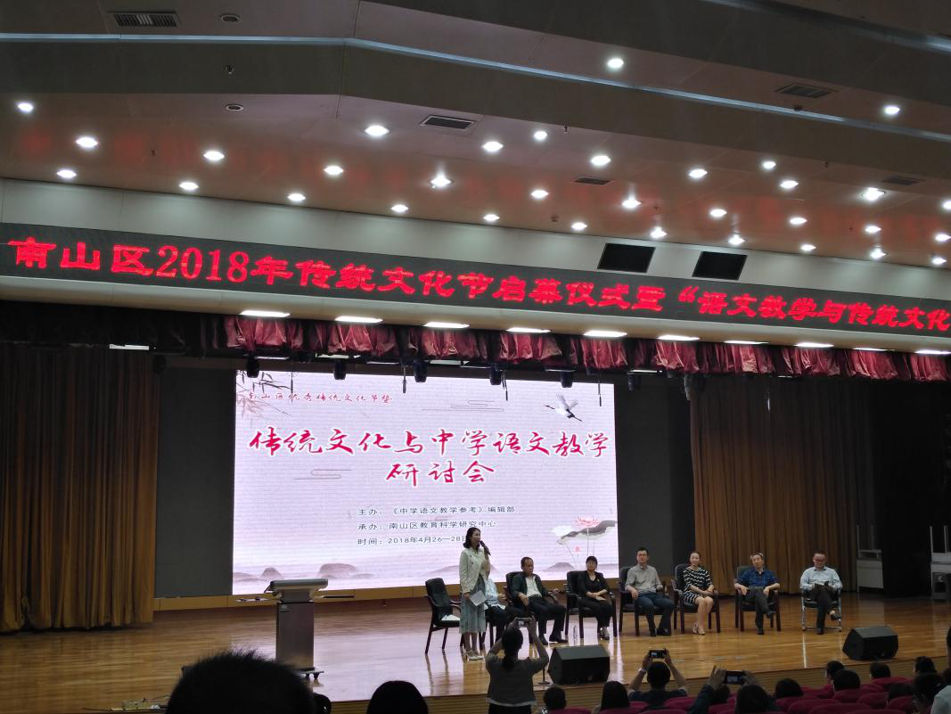 会上,来自人大附中、苏州十中、镇海中学和华侨城中学的语文名师昌盛、袁佳、叶隆晓等4人分别执教了4节语文专题示范课,全国语文教学名师谷曙光教授做了相关专题报告,深圳市南山区6所中学进行了古诗词吟诵展演。这次会议,各位专家、名校名师就“中学语文教学与传统文化”进行的成果汇报及展演,不仅开阔了我院师生的视野,而且还增强了专业学习训练的自觉性。
