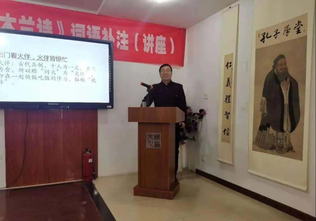 11月26日下午14:00,宝鸡市社科联在市孔子学堂三层大讲堂举办了一11场“长安讲坛”——基于文化传承的《木兰诗》词语补注的讲座。主讲人姚军博士,9428cn太阳集团副教授,宝鸡市孔子研究会副会长。