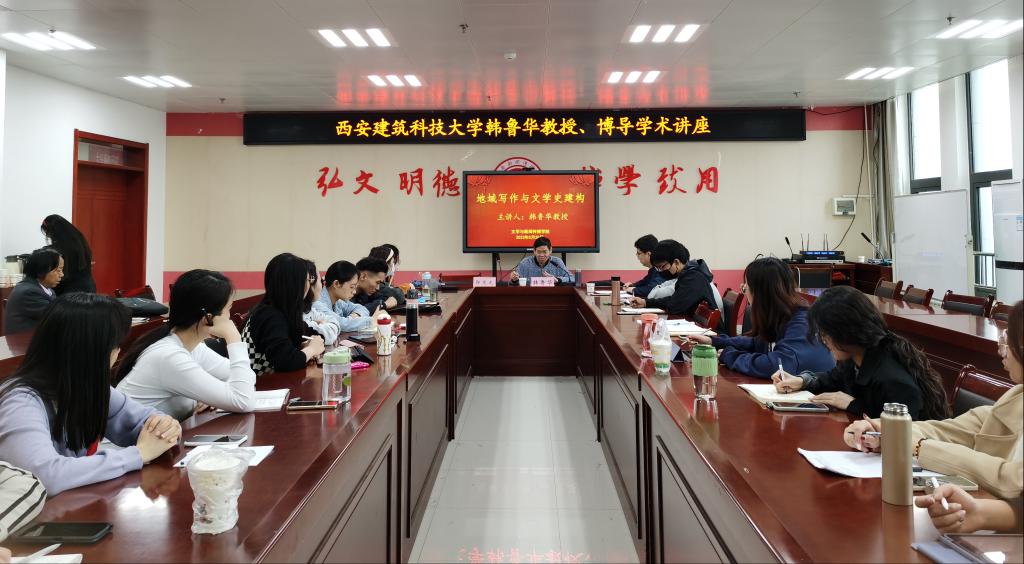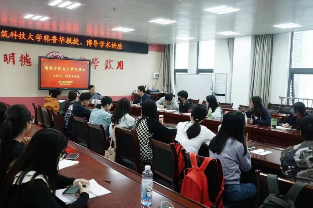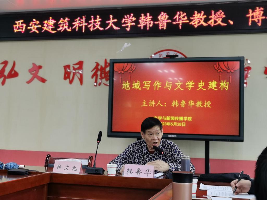 5月27日上午八点,西安建筑科技大学韩鲁华教授应邀在博文楼1401会议室,为我院研究生做题为《地域写作与文学史建构》的学术报告。现当代文学专业学科带头人郭文元教授主持,中国现当代文学专业全体研究生参加报告会。