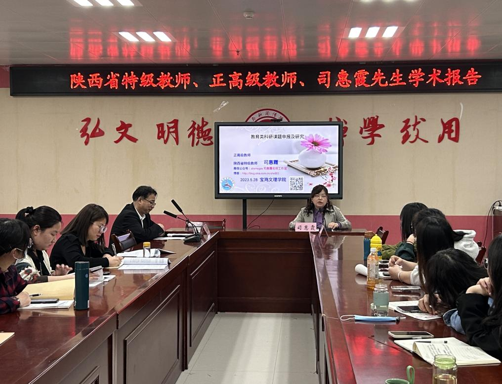 为有效指导我院学生开展课题研究,促进学生科研水平的提升,为申报或参与教育类科研课题提供专业指导,5月27日晚,我院特邀省级语文学科名师工作室主持人、正高级教师司惠霞老师在博文楼1401为全体学科教学(语文)研究生开展主题为“教育类科研课题申报及研究”专题讲座。