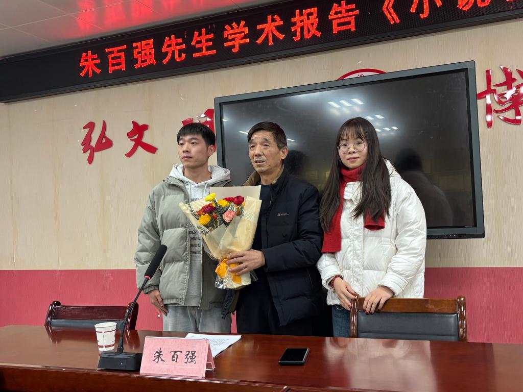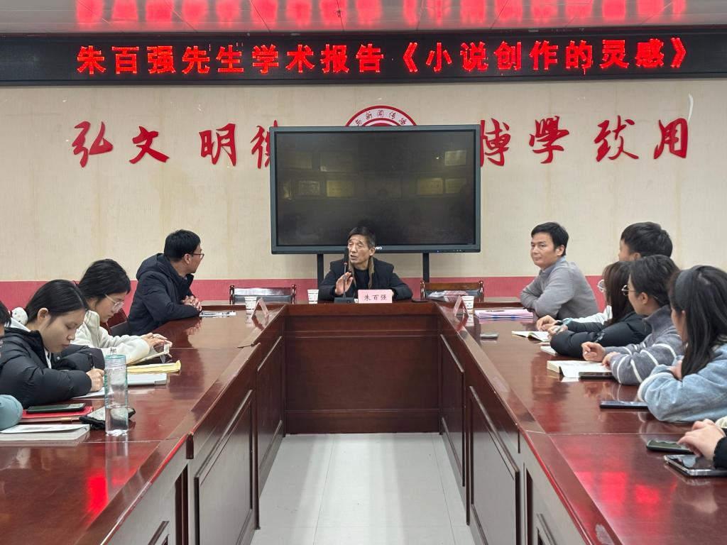 2025年1月8日晚上7:00宝鸡日报副刊编辑朱百强应邀在高新校区博文楼1401会议室为我院师生作了题为《小说创作的灵感》的学术报告会,会议由孟改正院长主持。