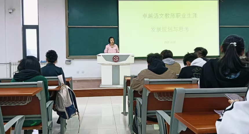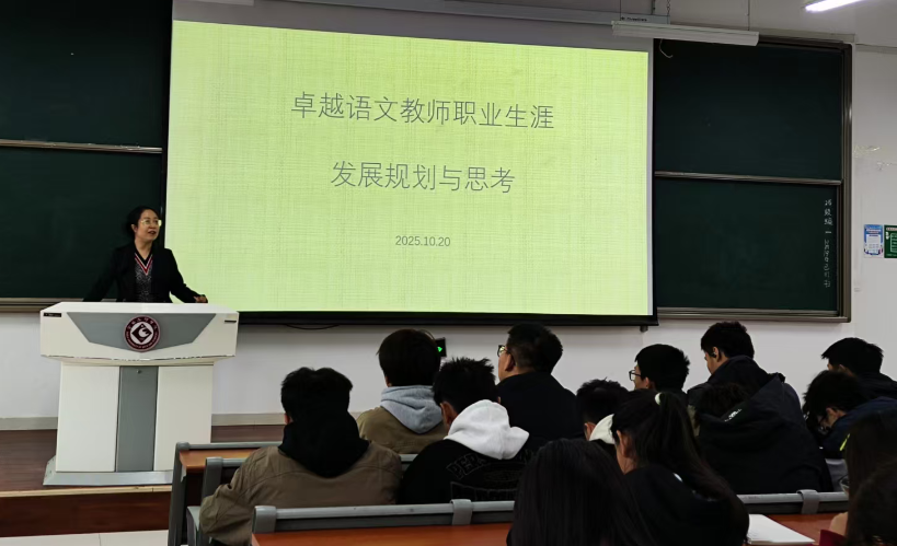 2025年10月20日,新建路中学语文高级教师、陕西省优秀教学能手、陕西省第五批名师培养对象毛洁老师,在博文副楼305教室,为我院师生做了题为《卓越语文教师职业生涯发展规划与思考》的讲座。