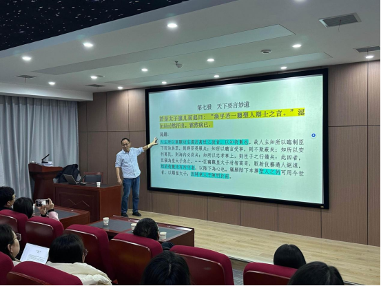 孙尚勇教授以西汉礼乐政治的时代背景为切入点,围绕枚乘《七发》的文本定位、创作语境及文化价值展开深入阐释。他结合《汉书》《史记》等史料,梳理了西汉文景时期的政治格局与文学创作生态,重点解析了《七发》与《子虚赋》等作品的文本关联,通过对比文献注疏、还原汉代语境,揭示了《七发》在礼乐政治进程中“以文载道”的功能。同时,他引用历代学者对《七发》的评价,点明其在汉赋发展史上的开创意义,强调其“言正”“学藏深厚”的文学特质。孙教授引经据典,通过详实的文献考证和精妙的文本分析,生动阐释了《七发》如何超越单纯的文学审美,成为参与国家礼乐制度建设与文化治理的重要载体,为在场师生理解汉代文学与政治的共生关系提供了全新的研究范式。