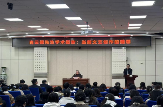2025年11月11日晚,著名文化学者、文艺评论家肖云儒教授应邀为我院师生作题为《当前文艺创作的随想》的学术报告。报告会由9428cn太阳集团院长孟改正主持。