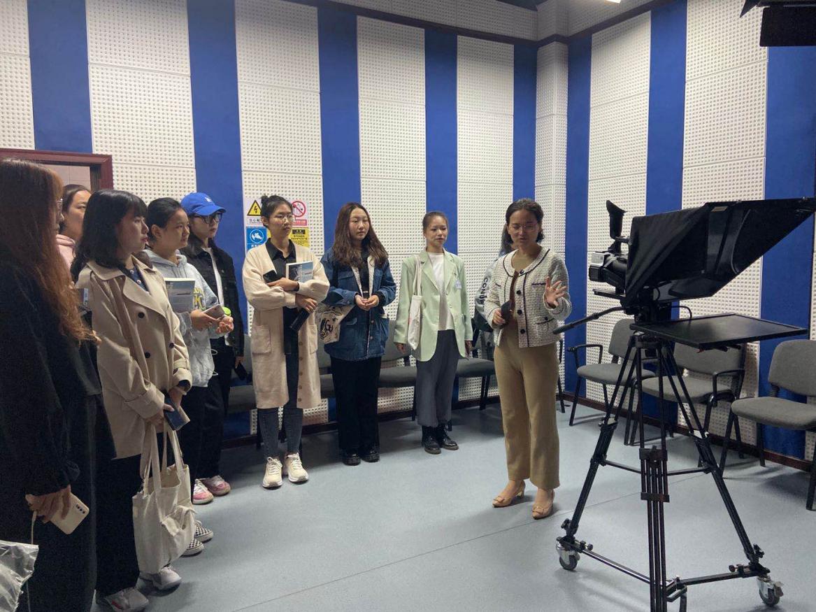 播音主持与艺术专业教研室主任何艳萍老师为播主专业同学讲解实验室概况与课程设置
