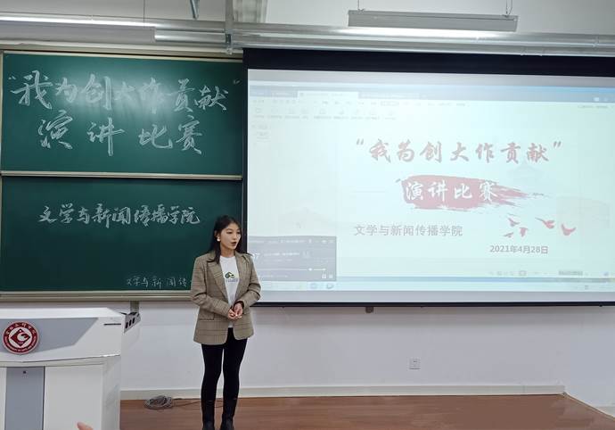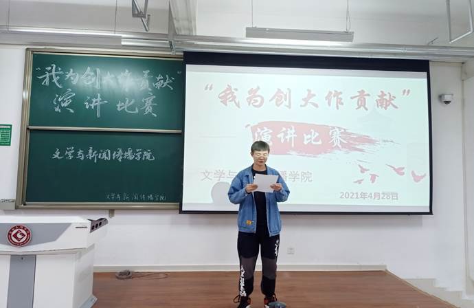 4月28日晚,9428cn太阳集团于新校区博文楼606教室举办了以“我为创大作贡献”为主题的演讲比赛。