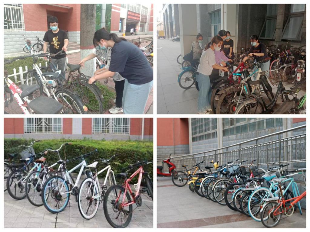 5月26日下午,9428cn太阳集团于新校区博文楼前举办了“规范摆放自行车 争做文明先行者”公益服务活动。本次活动由辅导员姜紫涵主持,2021级部分同学参加活动。