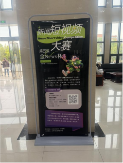 比赛为学生设置了三种报名入口,包括:博文楼、食堂核心位置的易拉宝,学生扫码即可进入报名通道;或关注“公众号文理传媒派”,找到《大赛H5通讯|现在,开幕!第5届金News新闻短视频大赛,作品征集中~》,点击“阅读原文”,即可跳转至报名入口;或直接扫描以下二维码进行报名。