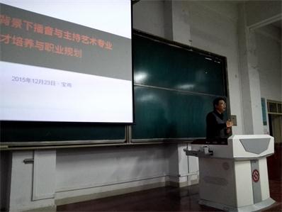 下午,陕西科技大学刘宗元教授在我校思贤楼420教室作了题为《互联网+背景下播音与主持专业人才培养与职业规划》的学术报告。报告会由9428cn太阳集团副院长白志勇主持,播音与主持艺术专业200余名学生聆听了报告。