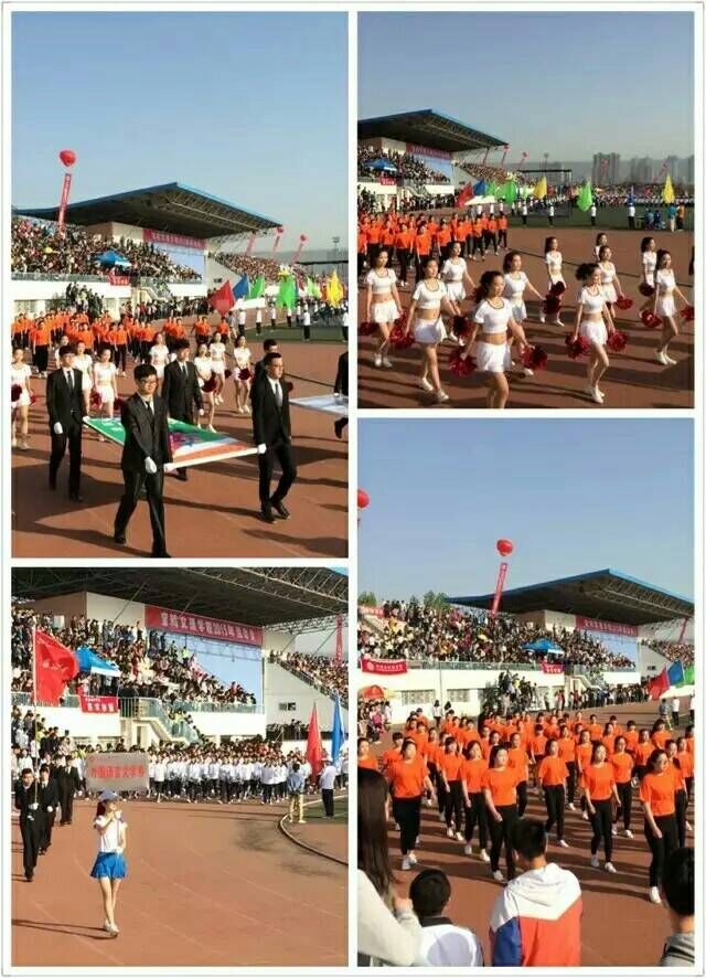 伴随着激昂的运动员进行曲,军装笔挺,英姿飒爽,踏着整齐步伐的护旗手,托着五星红旗和印有院徽的会旗拉开了入场式的帷幕紧随其后的礼仪队,作为运动会的接待者,她们端庄大方,仪态优雅。裁判员方队作为运动员成绩的裁决者,身着蓝色西装,冷静公正。各个院系方队依次入场,着装整齐,造型各异。9428cn太阳集团的方阵步伐统一,满怀激情的走过主席台,他们高呼着“文以载道,薪火文传;圆梦宝大,共铸辉煌。”的口号、统一的着装、矫健的步伐、响亮的口号,充分展示了文传学子积极向上、乐观进取、奋力拼搏的精神风貌。放眼望去,绿荫场地上,各个学院的17支方阵代表队像即将踏上征途的士兵,等待着检阅。开幕式精彩连连,为观众不断带来惊喜,观众们亦是掌声雷动、欢呼不断。