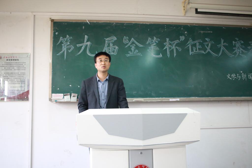 最后,白志勇副院长代表学院讲话。他强调,文传院历来重视学生写作能力的培养,2013版人才培养方案中就有明确的写作培养计划,而且这也是当今社会对文科人才的刚性需要。写作是人类重要的精神生产活动。它不只是用来表情达意、沟通信息,还是生命生存的形式、途径,是人生“三不朽”的价值取向之一,我们从中可以汲取前进的精神动力。写作更是当代大学生的必备才能,一个坐下来能写、站起来能说的青年才俊将拥有不可限量的发展空间。“金笔杯”是文传院实践教学的品牌活动之一,衷心希望这种形式能为同学们多写文章、写好文章发挥积极的推动引领作用,让一年一届的征文活动办出效益、发挥影响。