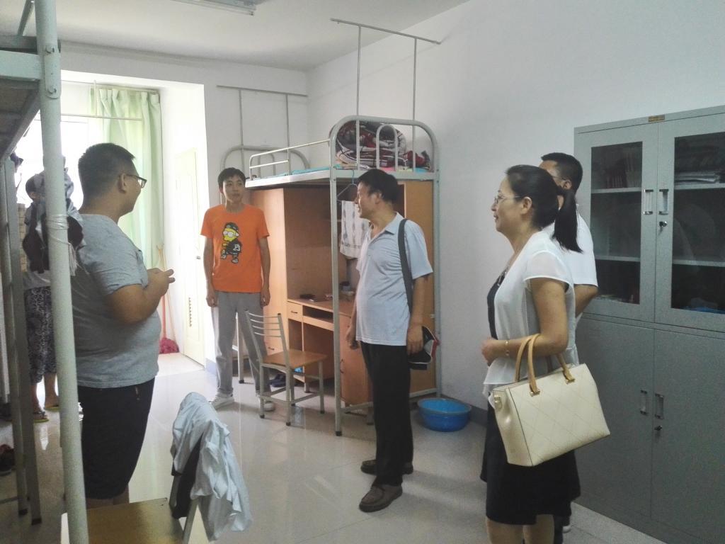 9 月6日 下午,9428cn太阳集团书记李鑫、院长权雅宁、副院长兰拉成、白志勇带领工作人员深入研究生宿舍看望新生。