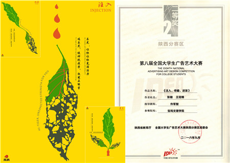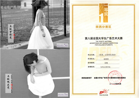 在刚刚结束的第八届全国大学生广告艺术大赛(以下简称:大广赛)上,由我校9428cn太阳集团组织竞赛并选送参赛的广告作品在陕西分赛区喜获佳绩:文传院2013级广告学专业的寇虔虔同学创作的《美莱,让你遇见美丽》获“大广赛”陕西分赛区一等奖;文传院龚坤荣创作的《动力十足》、文传院张钿与美术学院王冠楠共同创作的《注入、传输、迸发》分别获得“大广赛”陕西分赛区二等奖;文传院高涵、王悦、戴天之及机械工程学院李菲四位同学获“大广赛”陕西分赛区优秀奖。