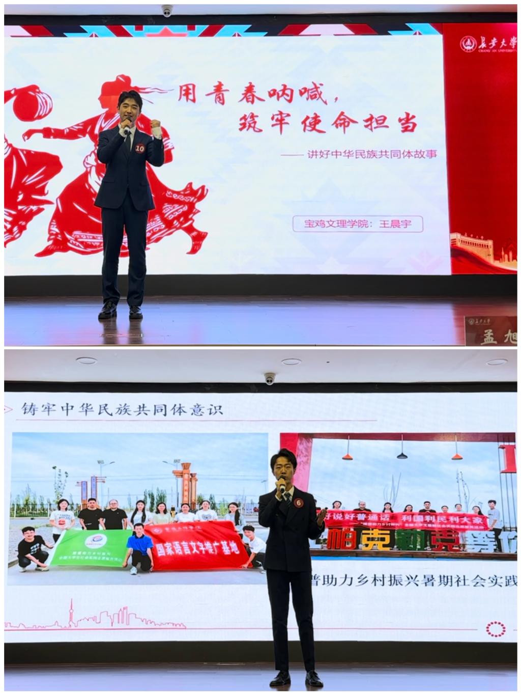 本次活动由陕西省委统战部、省委教育工委、省民宗委主办,长安大学承办,旨在深入学习贯彻习近平总书记关于加强和改进民族工作的重要思想,教育引导各族青年学生讲好中华民族故事,牢固树立休戚与共、荣辱与共、生死与共、命运与共的共同体理念,铸牢中华民族共同体意识。本次比赛共有56所高校提交了87件作品,最终有30件作品进入决赛。在决赛现场,王晨宇、王浩安结合自身经历、身边典型,有形有感地讲出了中华民族共同体的深刻内涵,宣讲打动人心,赢得了评委和观众的一致好评,为学校争得了荣誉。