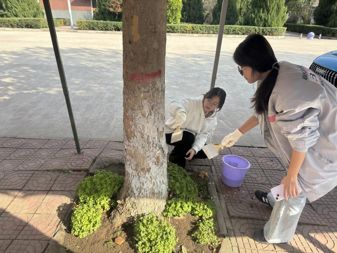 活动开始前,负责老师详细讲解了树木刷白的作用,包括防治虫害、减少昼夜温差对树木的损害等,强调了操作要点和注意事项。志愿者们分组行动,迅速投入到工作中。大家戴着手套、拿着刷子、提着石灰水,认真地对英才路、秦风路等道路旁的树木进行涂白工作,让行道树纷纷“旧貌换新颜”,为校园的树木进行了一次全面“美容”。