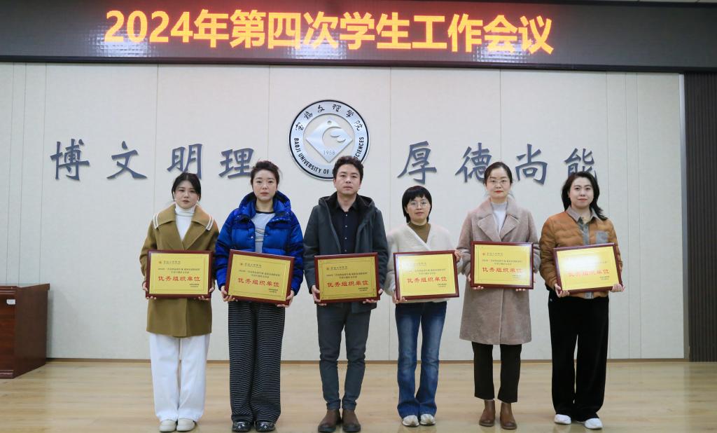 近日,学校召开了2024年第四次学生工作会议。会上,学校对各二级学院学生工作进行了表彰。我院荣获2024年“青春热血铸军魂 砥砺奋进新征程”军训主题征文活动优秀组织单位、2024级本科新生校纪校规和安全知识竞赛优秀组织单位。