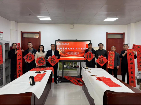 1月13日上午,文传院工会联袂国家语言文字推广基地(党支部)在博文楼1403室举办了2025年“迎新春•送祝福”春节对联书写活动。副校长冯飞龙教授、文传院党委书记郭锋航、院长孟改正等领导莅临活动现场,副校长冯飞龙教授挥毫泼墨,书写“福”字。