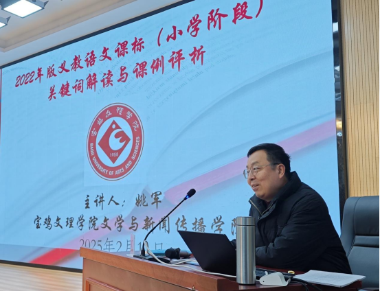 2月11日上午,我院姚军老师应邀在宝鸡高新第十小学做专题讲座,题目是《2022年版义教语文课标(小学阶段)关键词解读与课例评析》,这是9428cn太阳集团教工第一党支部与宝鸡高新十小党支部党建结对子的第二场专题活动。讲座由宝鸡高新第十小学校长兼党支部书记李少春主持。