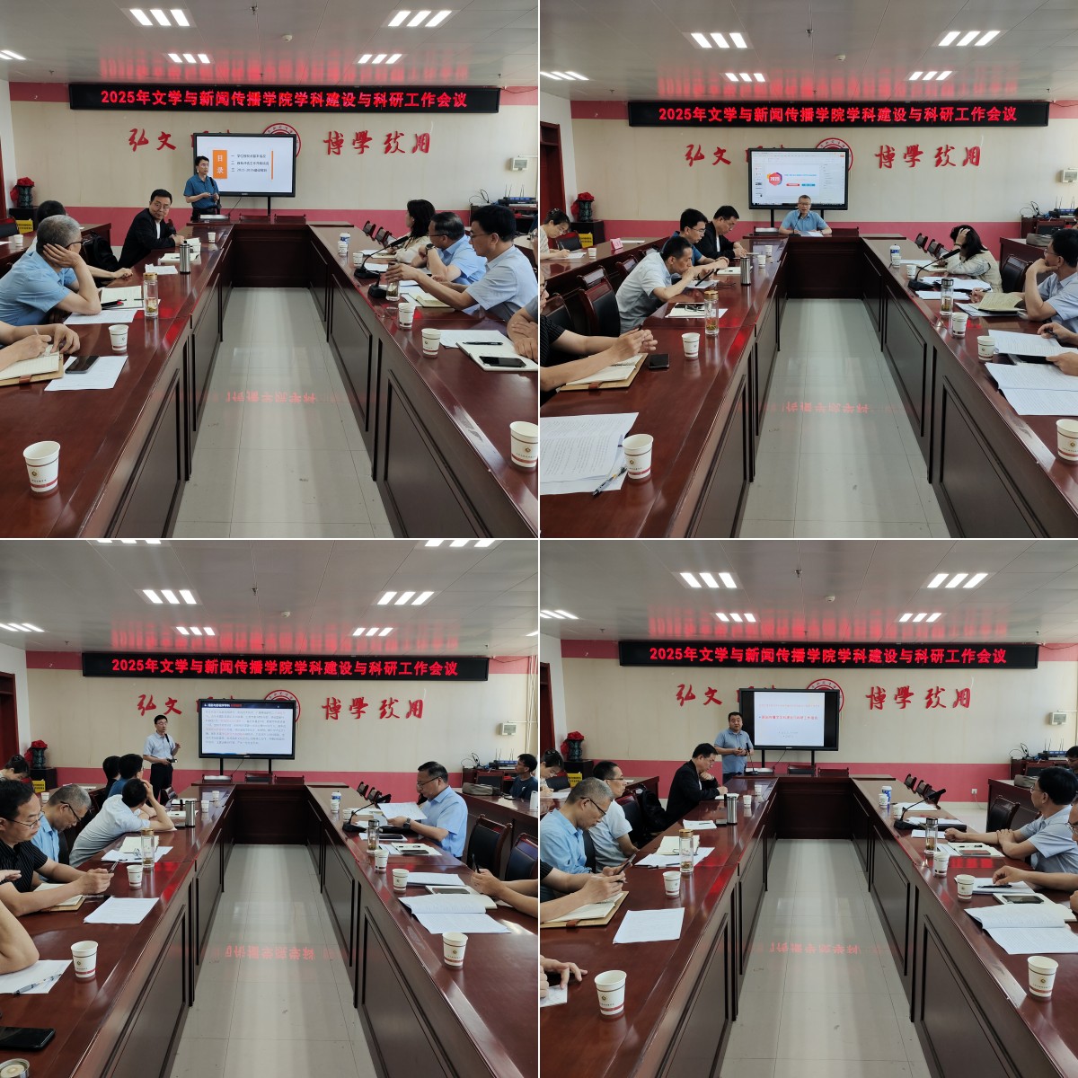 学院各学科负责人分别做了工作报告。郭文元总结了中国语言文学学科建设情况,对标申博要求提出要整合学科资源与凝练学科特色的建议,明确了师资队伍建设、高层次成果产出、举办国际会议等建设规划。王渭清对学科教学(语文)多年来重研究生培养而轻学科建设的状况作了分析,提出引进语文学科教学论博士、申报教育规划项目、落实审核评估中教学法教师职称晋升有关要求等建议。孟改正分析了戏剧与影视学科近年来的建设成果与问题,提出深化西部民俗影像研究、强化中外人文交流合作基地建设、提升服务地方能力等措施。仵军智围绕新闻传播学科申硕准备,介绍了建设情况和存在的不足,对标提出了整合资源补齐短板具体建议。