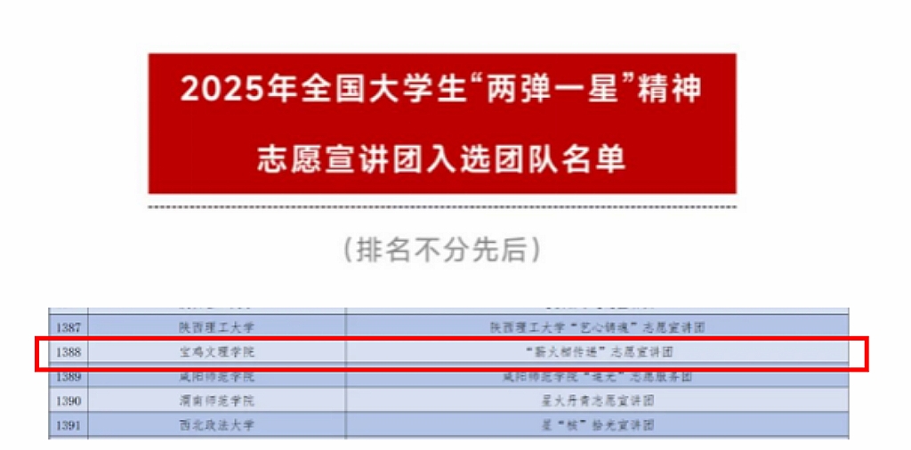 近日,团中央青年志愿者行动指导中心与中国核工业集团有限公司联合发布了《关于遴选2025年全国大学生“两弹一星”精神志愿宣讲团入选团队名单》,我院“薪火相传递”宣讲团成功入选。