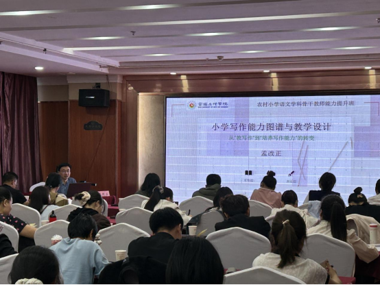 9月19日上午,我院院长孟改正教授作为“国培计划(2025)”农村小学语文骨干教师能力提升培训项目首席专家,为参训学员做“小学写作能力图谱与教学设计:从‘教写作’到‘培养写作能力’的转变”的学术讲座。