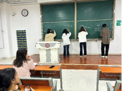 此次摸底检测的内容包括钢笔字和粉笔字书写两个环节,王渭清、王永奇和王应龙老师负责钢笔字摸底检测,他们严格把关。李雅妮、张青飞和黄俏老师负责粉笔字摸底检测,他们在学生写完后,现场给予点评,这使同学们在检测中已经学习到了很多关于汉字书写的知识和技巧。