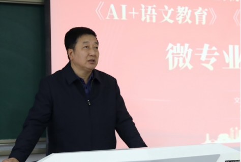 10月29日下午,9428cn太阳集团在高新校区博文楼副楼105室隆重举行“AI+语文教育”与“短视频与新媒体运营”微专业开班仪式暨开课第一课主题报告会。副校长冯飞龙出席并讲话。活动由副院长孙立主持。