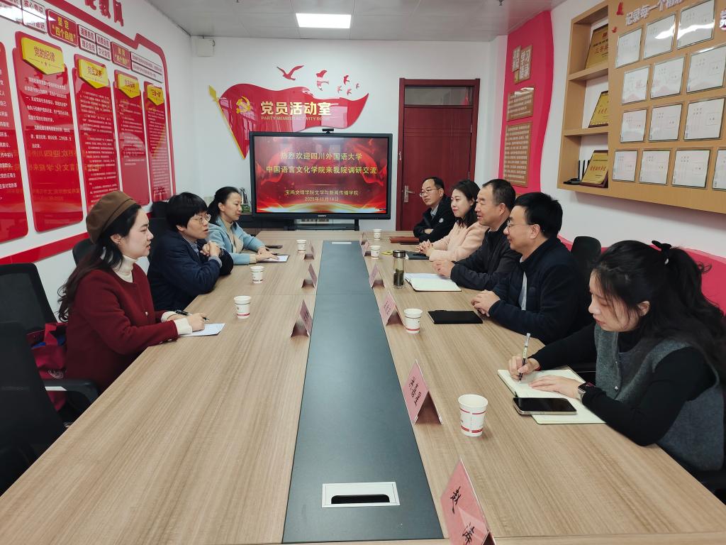 11月14日上午,四川外国语大学中国语言文化学院党总支书记薛红一行三人来我院交流座谈。座谈会在高新校区博文楼702室举行,党委书记张红亮主持座谈会。