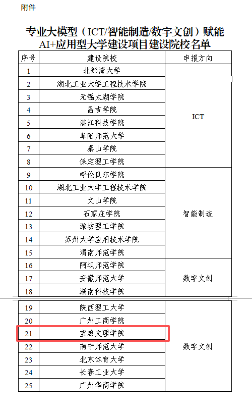 近日,教育部学校规划建设发展中心发布《关于公布专业大模型(ICT/智能制造/数字文创)赋能AI+应用型大学建设项目建设院校名单的通知》,我校成功入选专业大模型(数字文创)赋能AI+应用型大学建设项目院校。