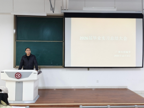 为总结实习成果、分享实践经验,12月3日,我院广播电视编导专业在博文楼508教室举行2026届毕业实习总结大会。学院副院长孙立,教研室杨乐、李鹏鲛及王兰老师,编导专业2022级、2023级全体学生参加会议。会议由实习带队教师贺静娜主持。