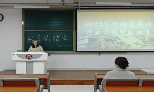 为总结实习成果,分享实践经验,12月9日,我院新闻学专业在博文楼607教室举行了2026届毕业实习总结大会。新闻学教研室主任余亚莉,王欢、周婷教师,新闻专业24,23、22级全体同学参加会议。会议由实习带队教师郑欣主持。